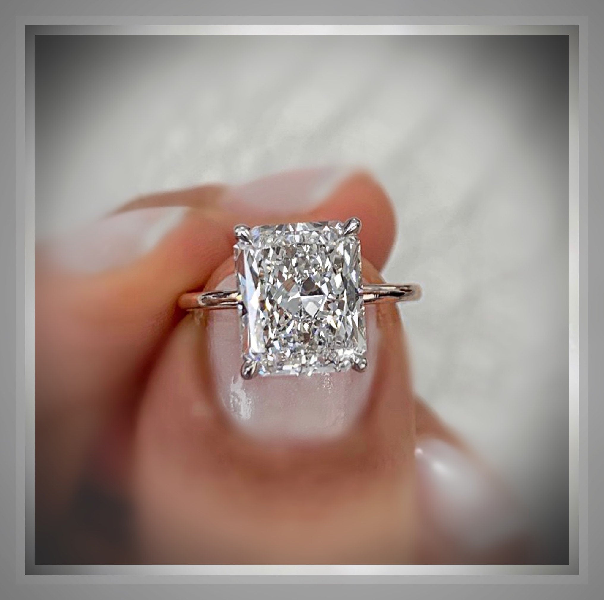 3.00 Ct Radiant Cut Diamond Solitaire Engagement Ring VS1 14K & Platinum
